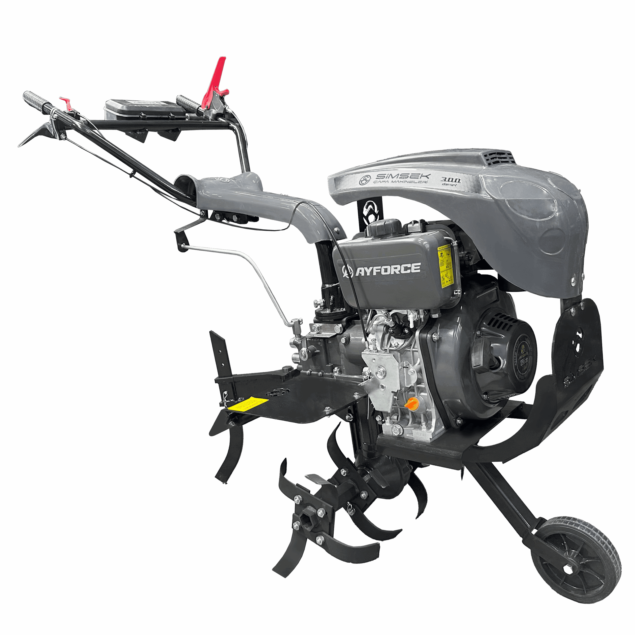 ŞİM 300 D, 7 Hp dizel motor gücü ile yüksek verim sunar. İpli çalıştırma sistemi, pratik bir kullanım sağlar.