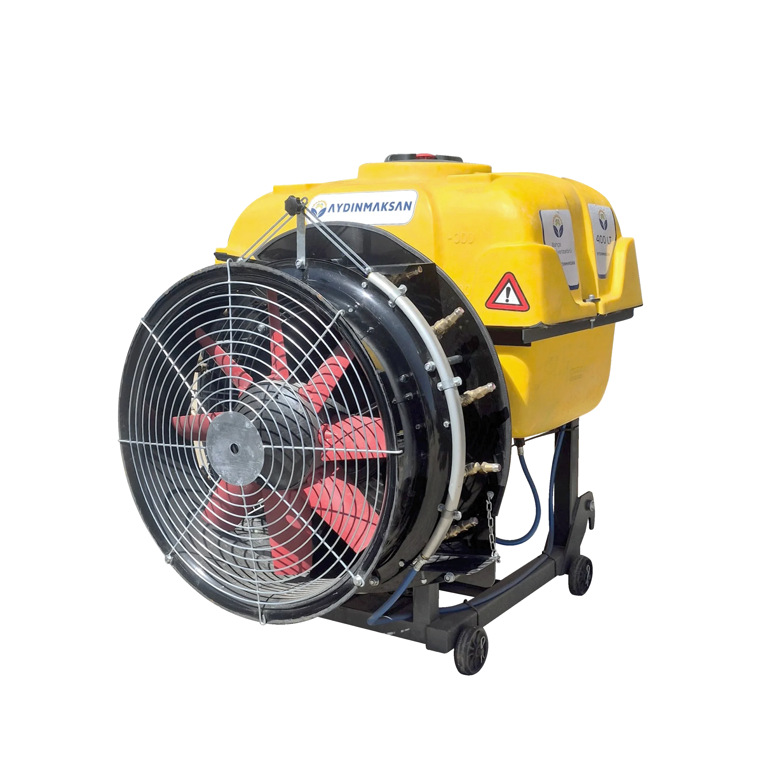 Fan etrafındaki ayarlanabilir memelerden basınçlı ilaçlı su, hava akımıyla taşınarak her tür meyve bahçesi, bağ, yüksek ağaç ve narenciye alanlarını etkili bir şekilde ilaçlar.