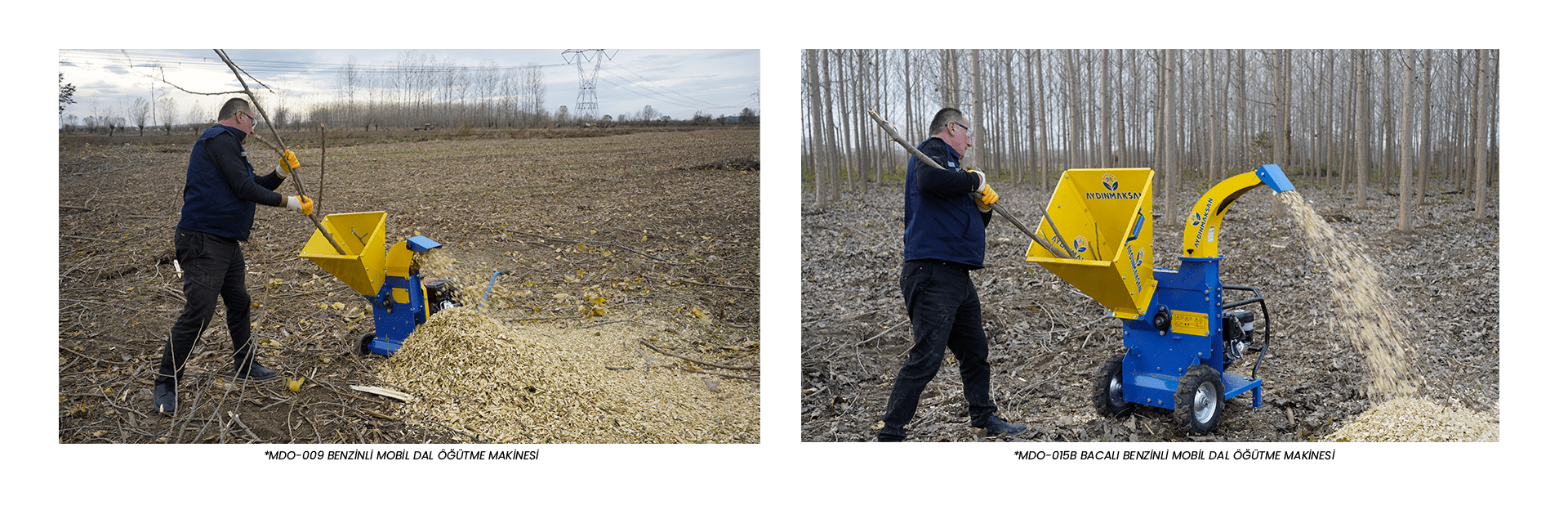 - Ormancılık: Orman temizliğinde, ağaç kesimlerinde ve budama sonucu ortaya çıkan dallar ve yangın önleme çalışmalarında ve diğer atıklar mobil dal öğütme makineleri ile temizlenir.